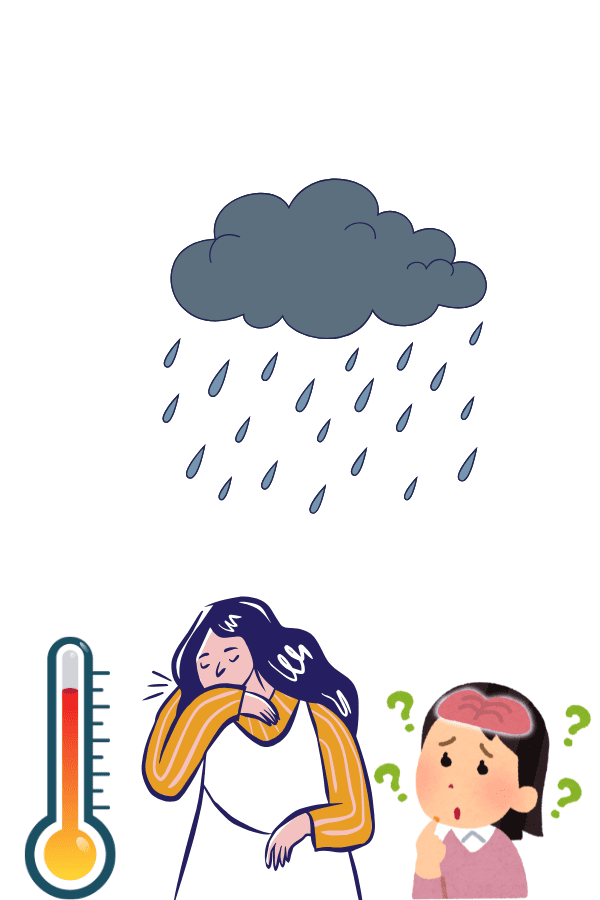 Character 1: Not quite. It means I feel sick, like being in gloomy weather. It’s like saying my health feels like a rainy day.